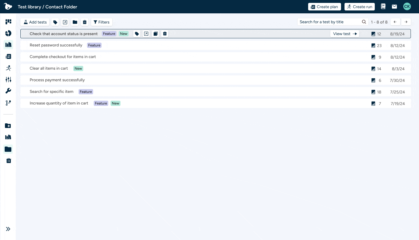 Embedding our test additions into the library was inspired while conducting competitive research for other companies. The product team discovered a competitor that had an impressive experience for adding test steps within the test view itself. After creating an updated experience for our users to add test steps, I realized that our users could benefit from a similar experience within the test library.